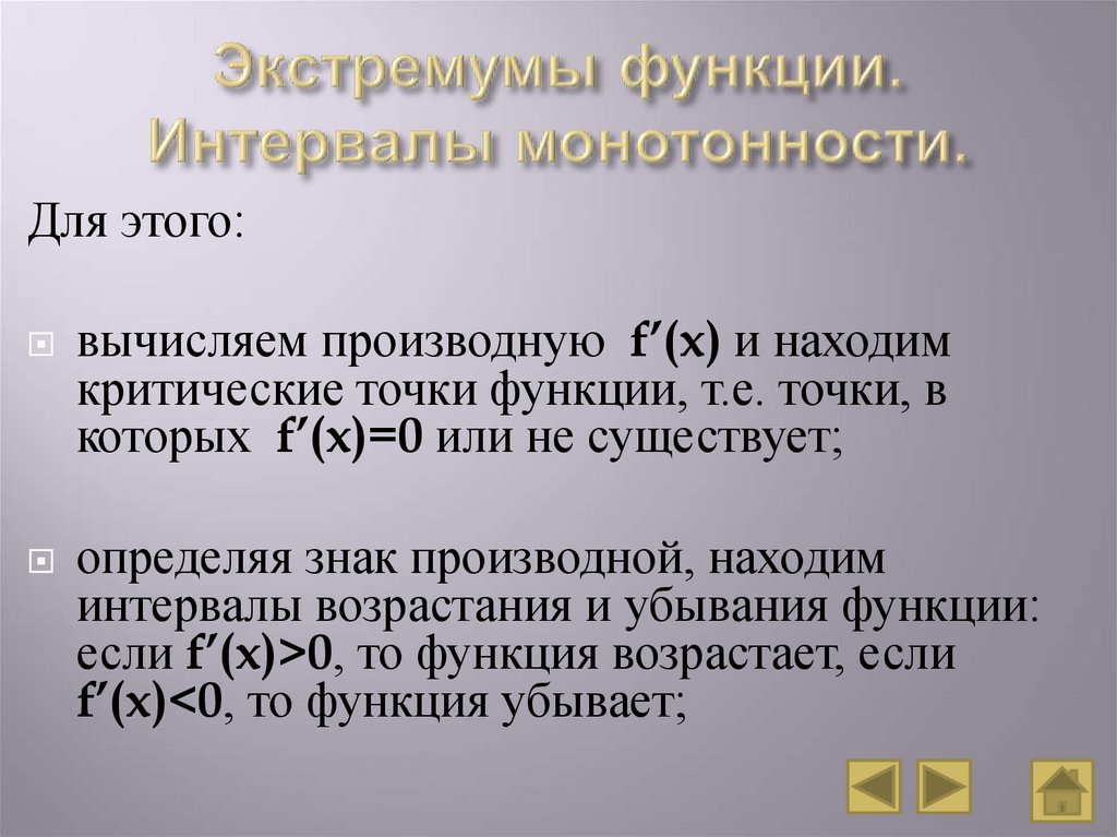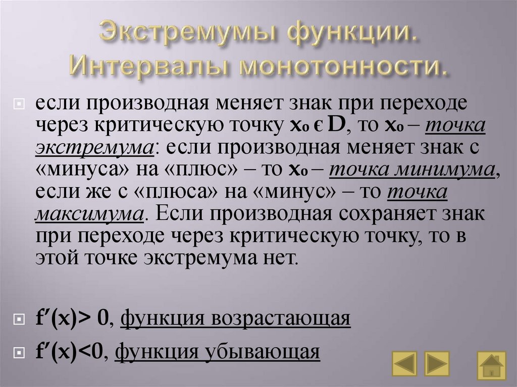 если производная меняет знак при переходечерез критическую точку xo є D, то xo – точка