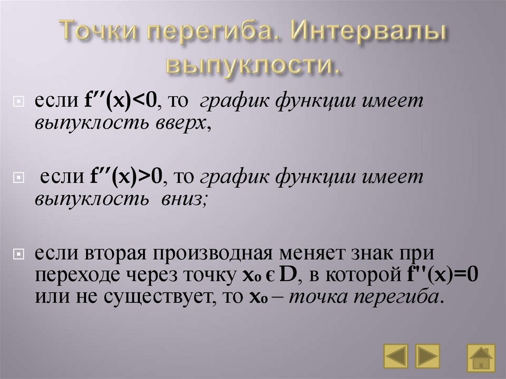 если f’’(x)<0, то график функции имеетвыпуклость вверх,