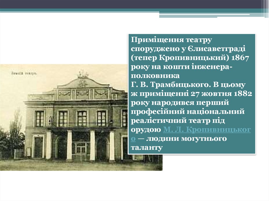 Приміщення театруспоруджено у Єлисаветграді