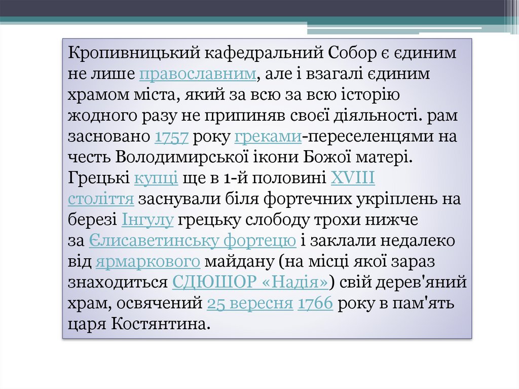 Кропивницький кафедральний Собор є єдинимне лише православним, але і взагалі єдиним
