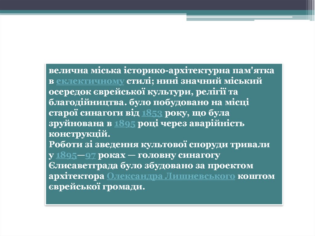 у 1895—97 роках — головну синагогу