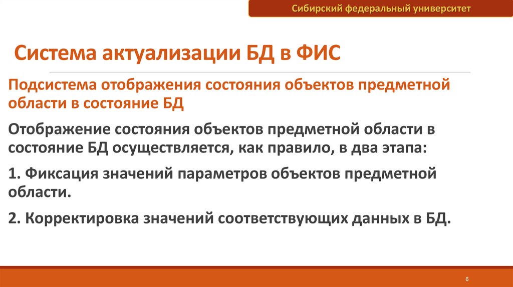 Сибирский федеральный университетСистема актуализации БД в ФИС
