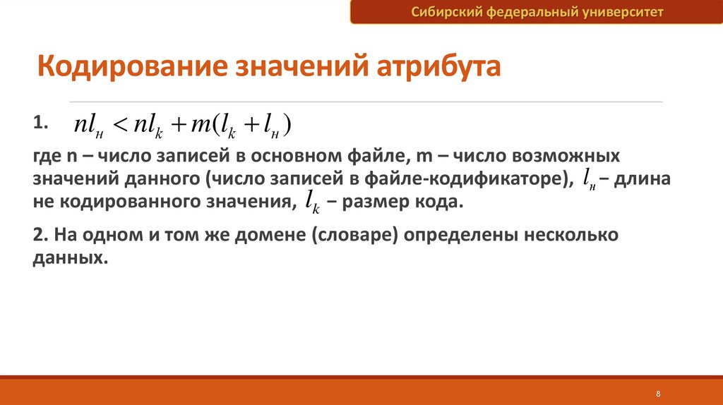 значений данного (число записей в файле-кодификаторе), lн − длина