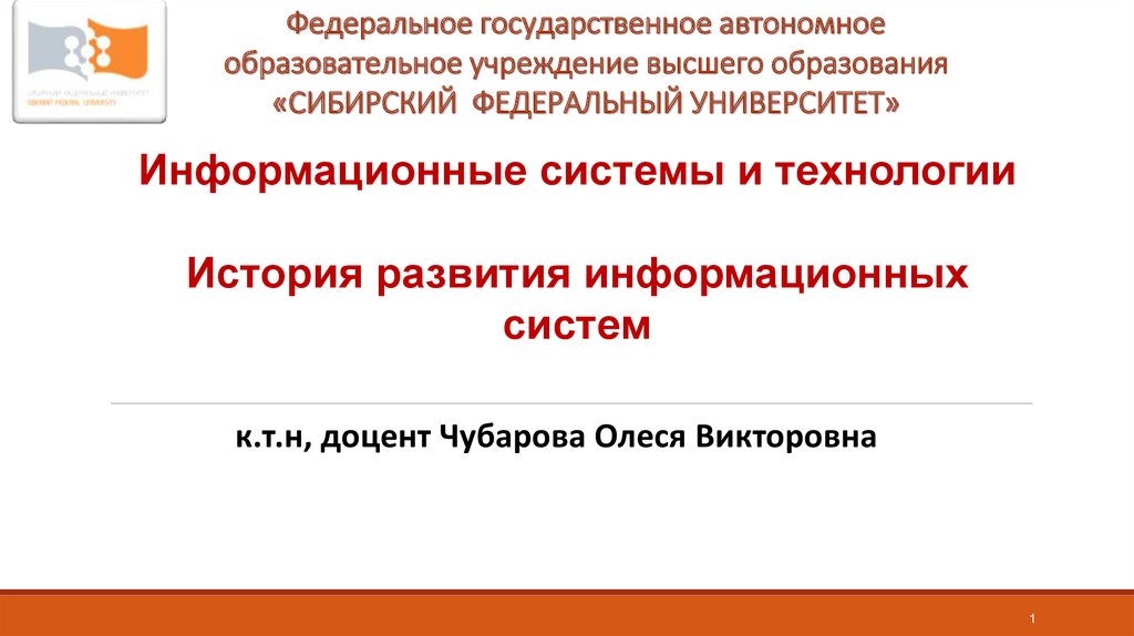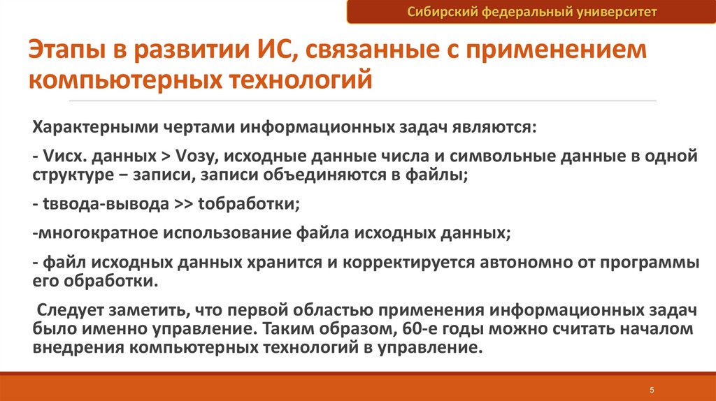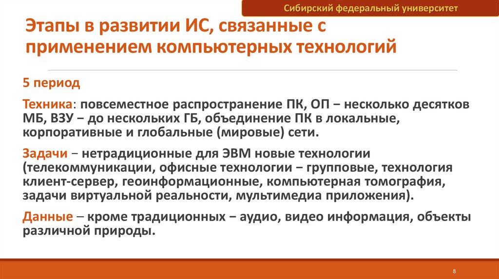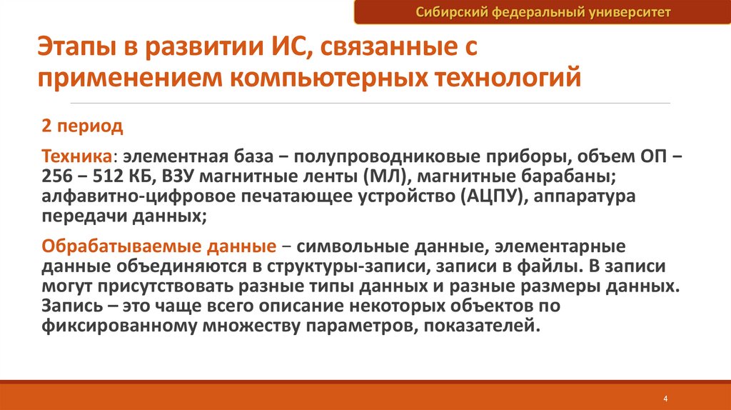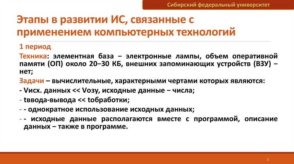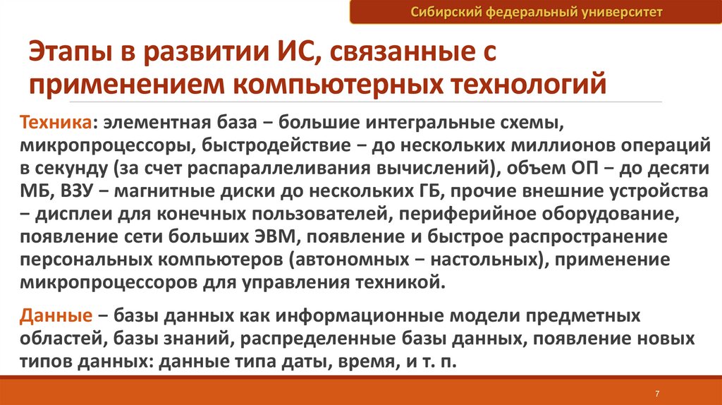 Сибирский федеральный университетЭтапы в развитии ИС, связанные с