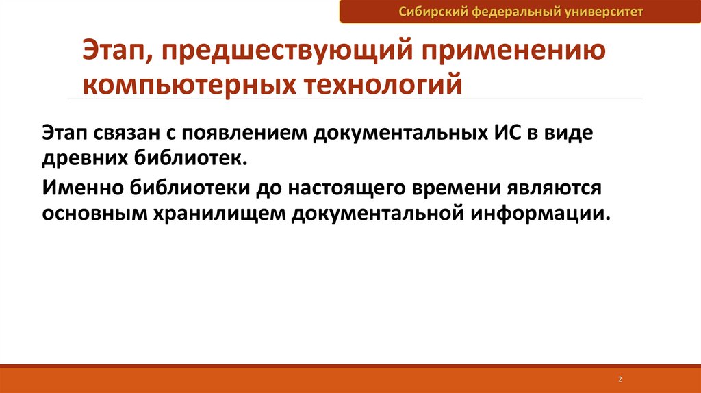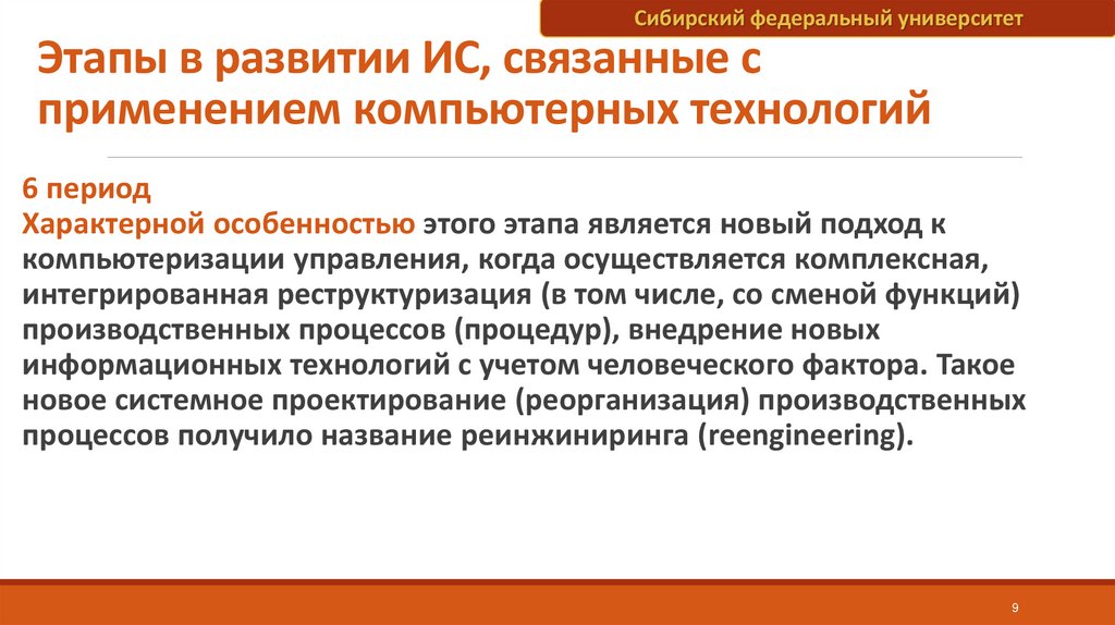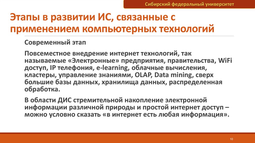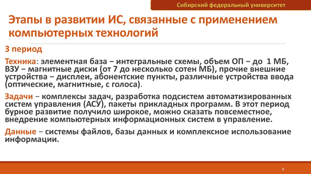 Сибирский федеральный университетЭтапы в развитии ИС, связанные с применением