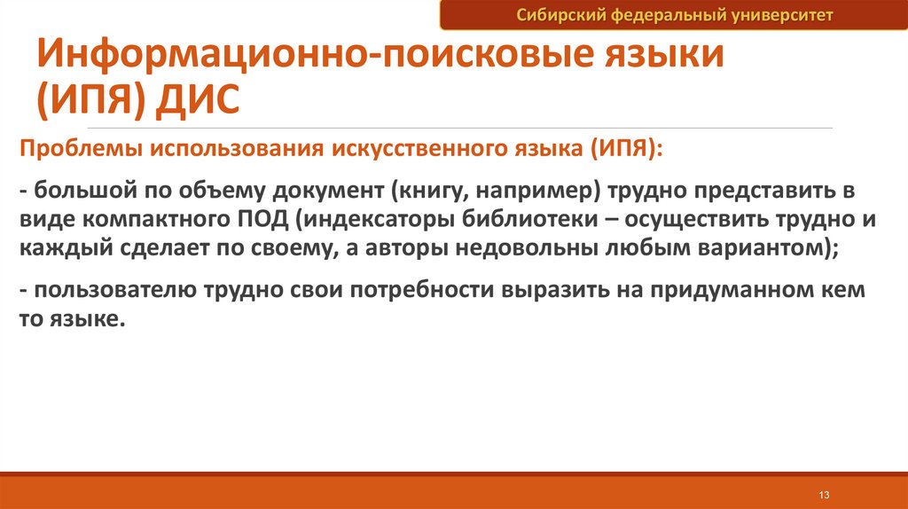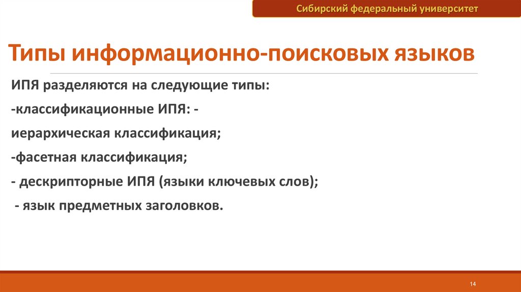Сибирский федеральный университетТипы информационно-поисковых языков