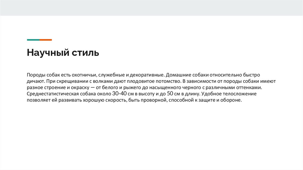 Научный стильПороды собак есть охотничьи, служебные и декоративные. Домашние собаки относительно быстро