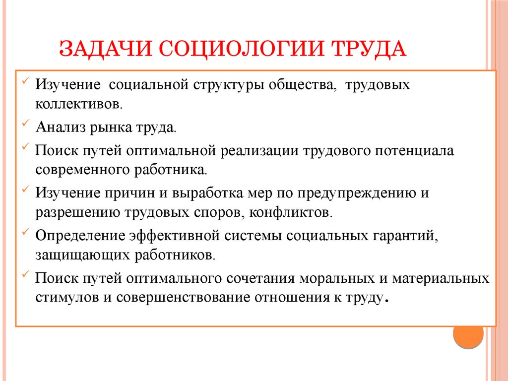 ЗАДАЧИ СОЦИОЛОГИИ ТРУДАИзучение социальной структуры общества, трудовых