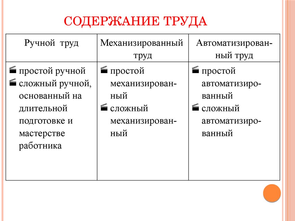 СОДЕРЖАНИЕ ТРУДАРучной труд