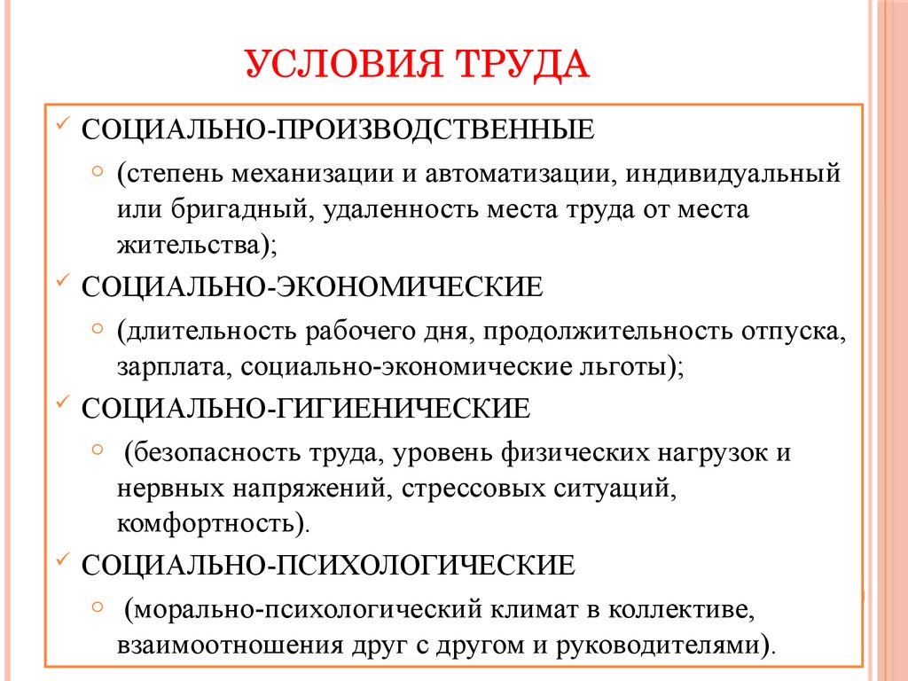 УСЛОВИЯ ТРУДАСОЦИАЛЬНО-ПРОИЗВОДСТВЕННЫЕ