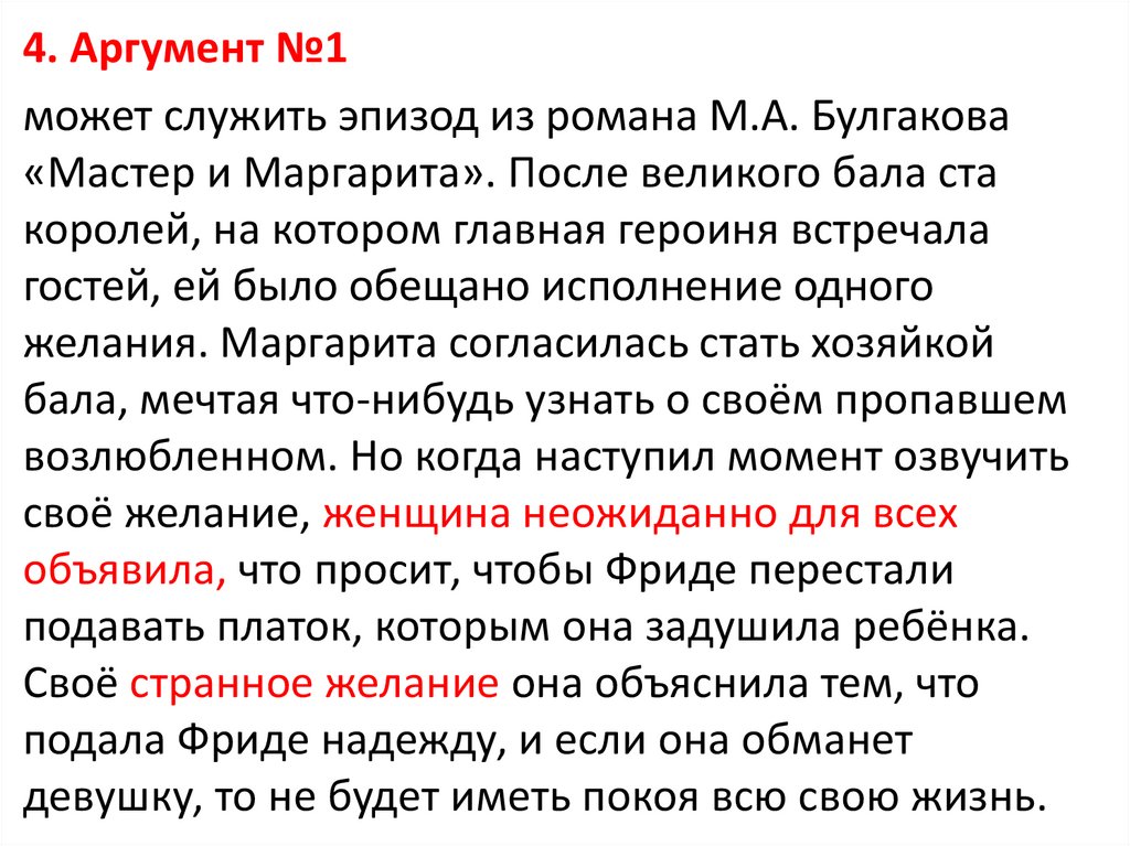 4. Аргумент №1может служить эпизод из романа М.А. Булгакова
