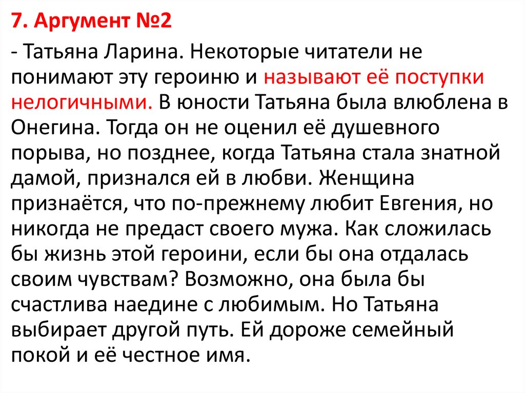 7. Аргумент №2- Татьяна Ларина. Некоторые читатели не