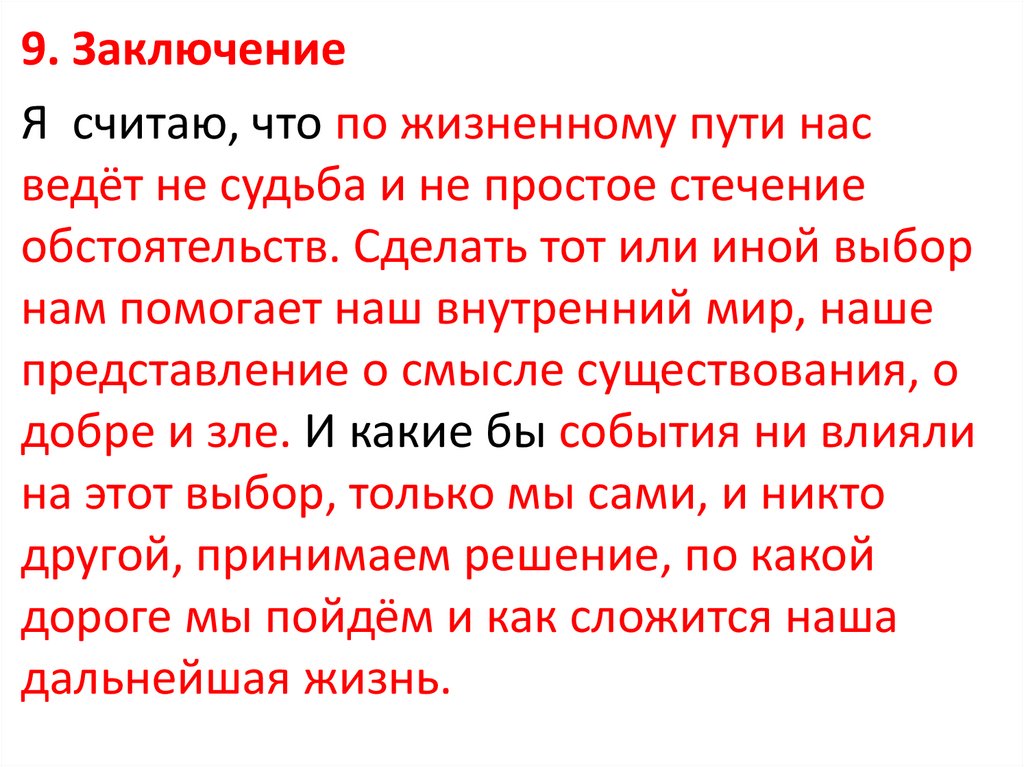 9. ЗаключениеЯ считаю, что по жизненному пути нас