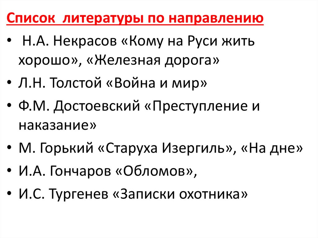 Список литературы по направлению• Н.А. Некрасов «Кому на Руси жить