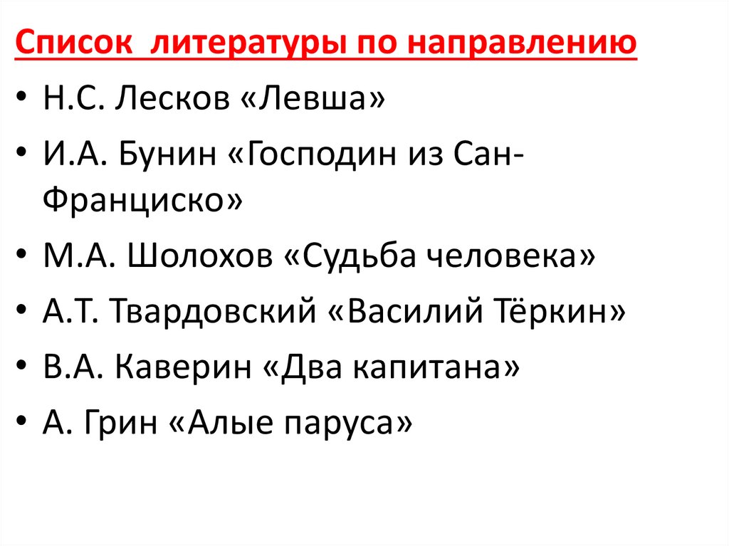 Список литературы по направлению• Н.С. Лесков «Левша»