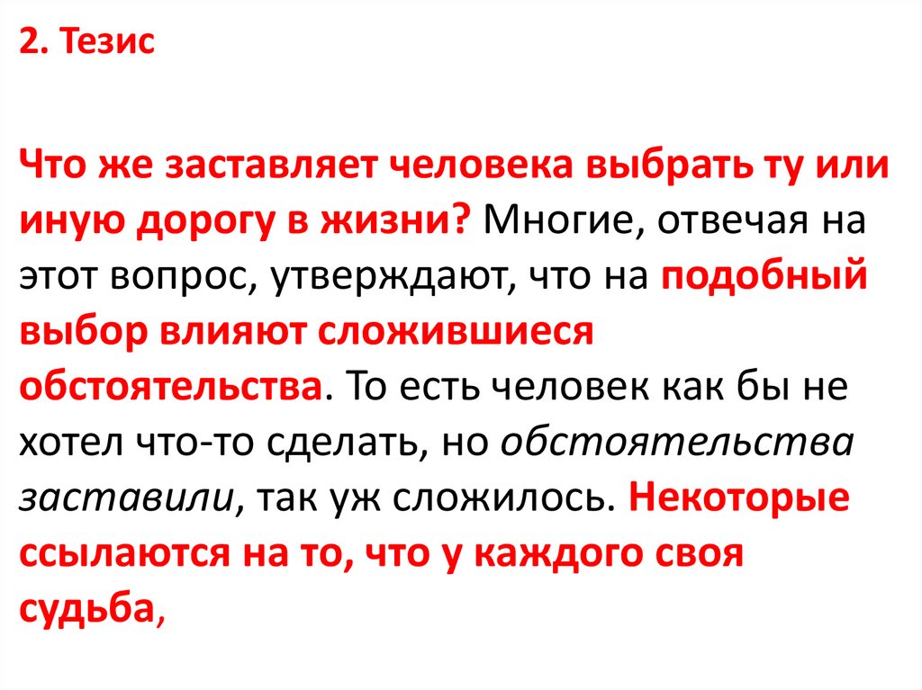 2. ТезисЧто же заставляет человека выбрать ту или