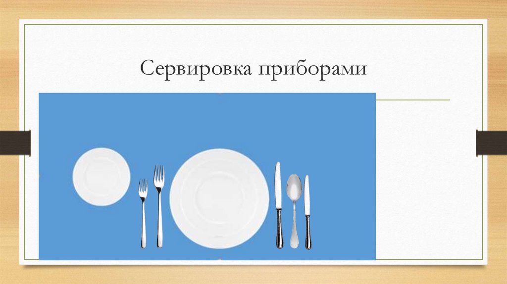 • Сервировка (от франц. servir — служить) имеетследующие значения: подготовка стола к завтраку,