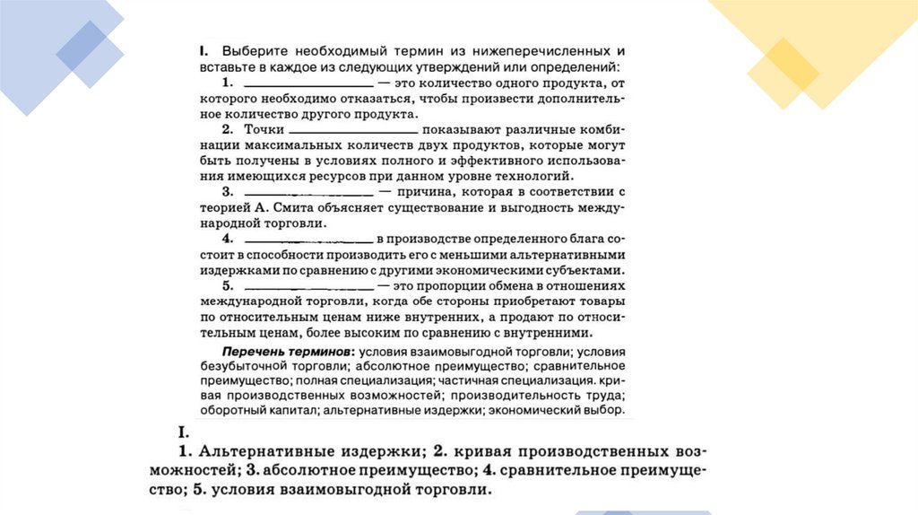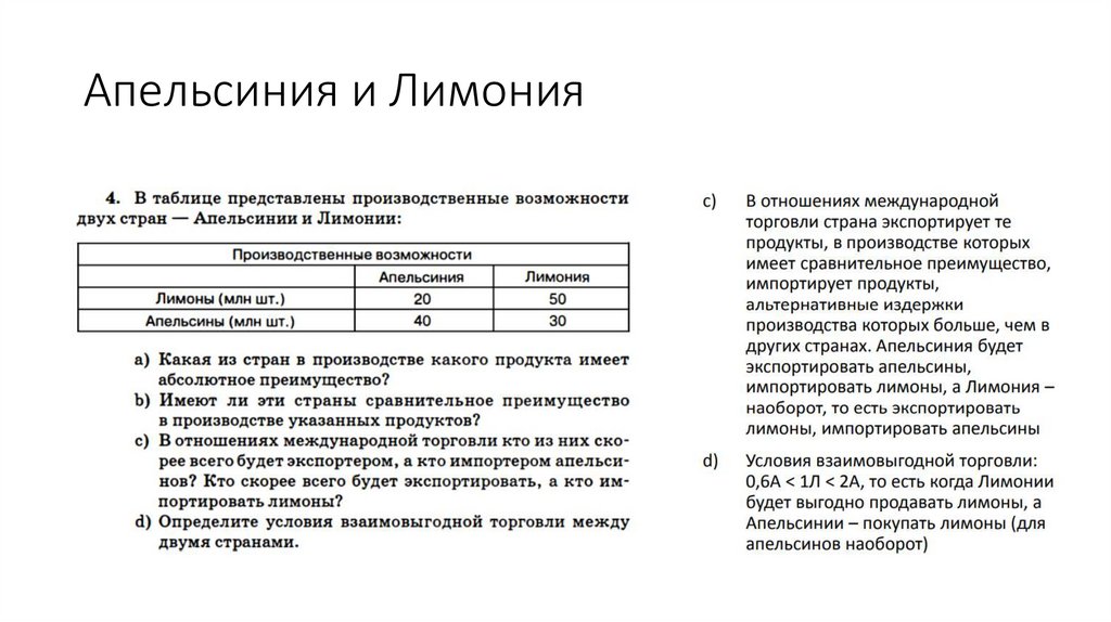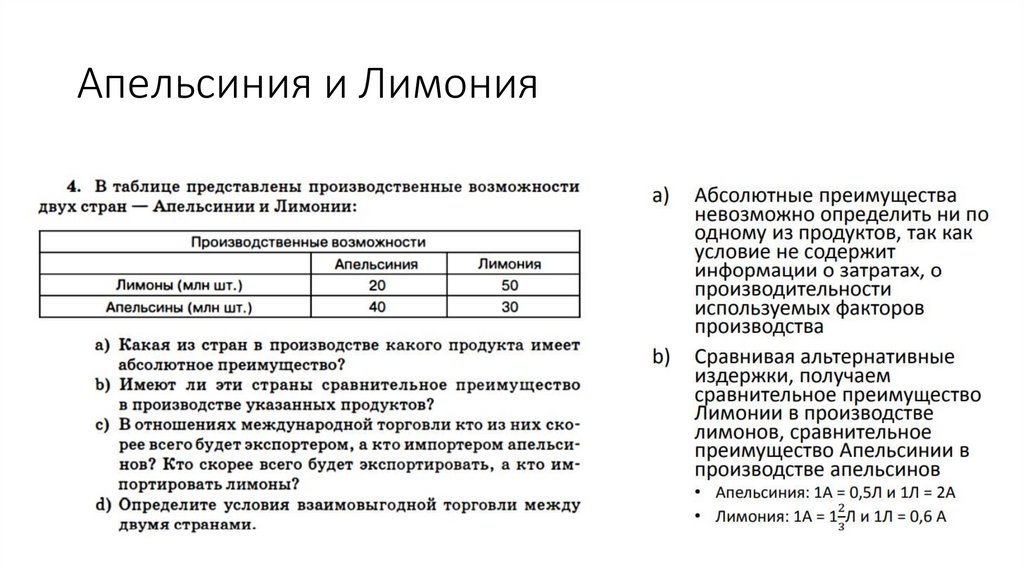 Абсолютные и сравнительные преимущества. Условия взаимовыгодной торговли