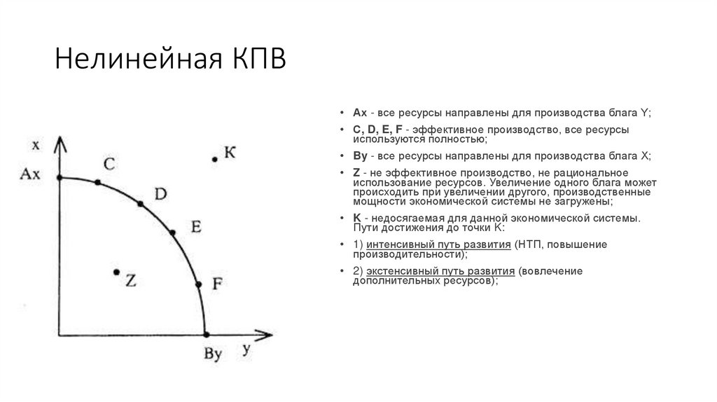 Нелинейная КПВ• Aх - все ресурсы направлены для производства блага Y;