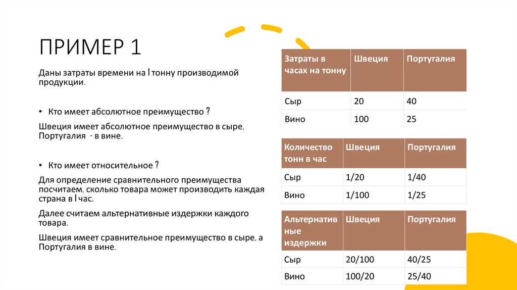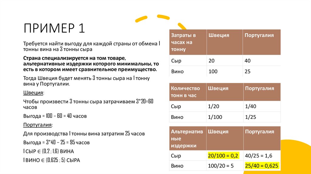 ПРИМЕР 1Требуется найти выгоду для каждой страны от обмена 1