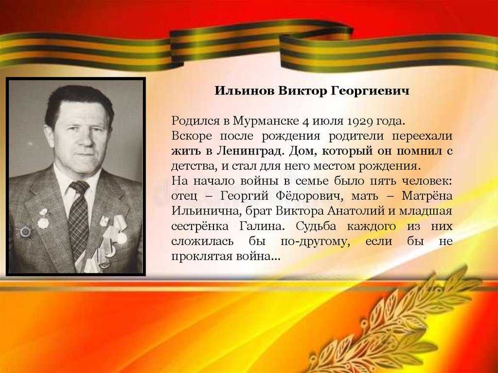 Ильинов Виктор ГеоргиевичРодился в Мурманске 4 июля 1929 года.