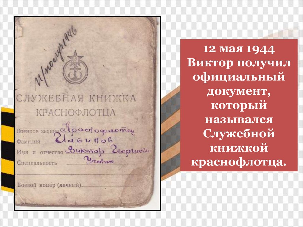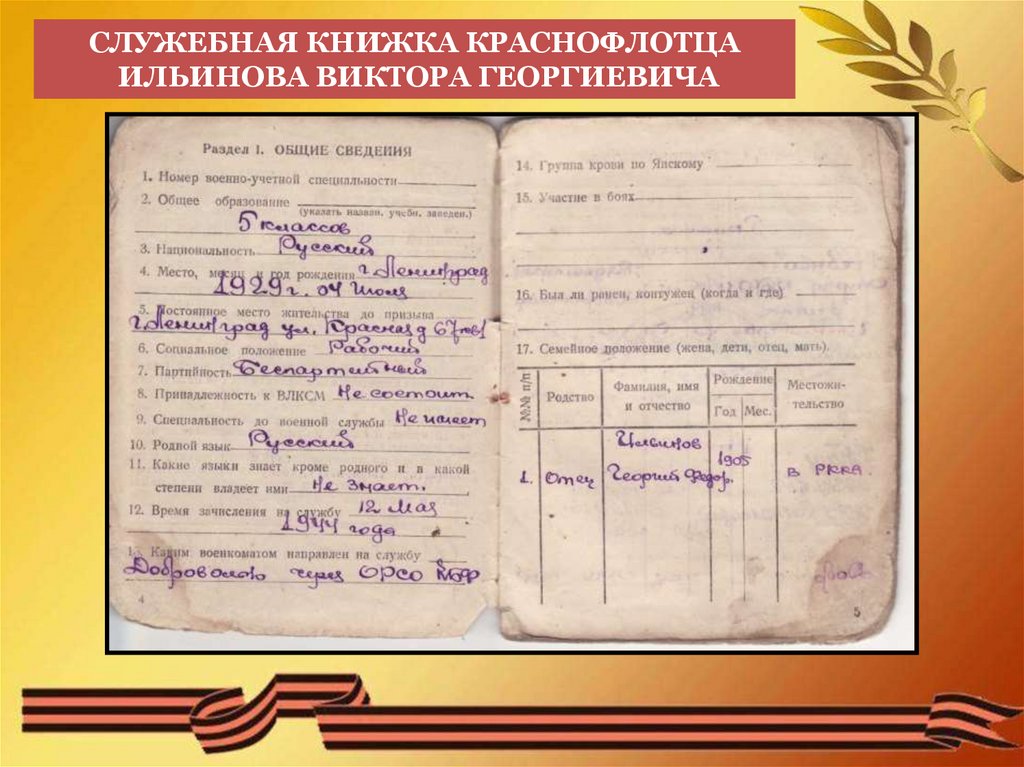 СЛУЖЕБНАЯ КНИЖКА КРАСНОФЛОТЦАИЛЬИНОВА ВИКТОРА ГЕОРГИЕВИЧА