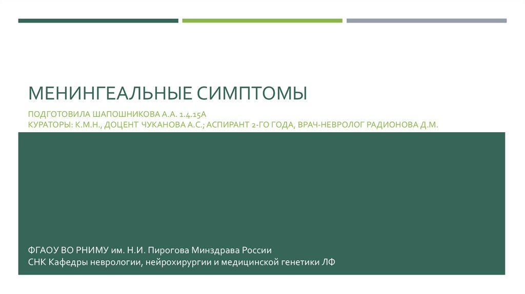 МЕНИНГЕАЛЬНЫЕ СИМПТОМЫПОДГОТОВИЛА ШАПОШНИКОВА А.А. 1.4.15А