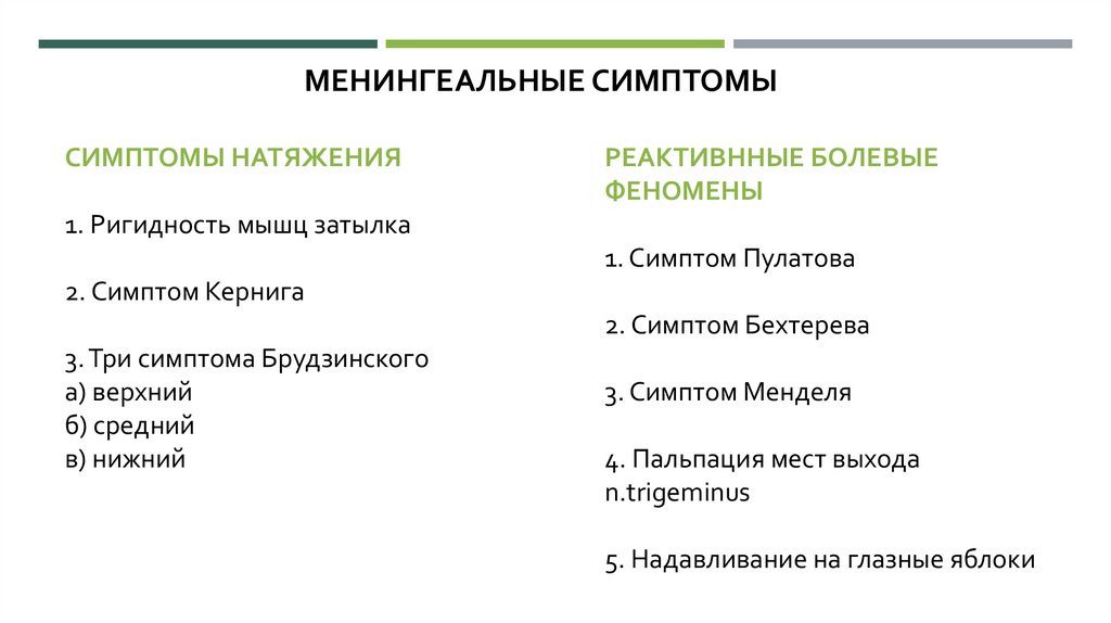 МЕНИНГЕАЛЬНЫЕ СИМПТОМЫСИМПТОМЫ НАТЯЖЕНИЯ