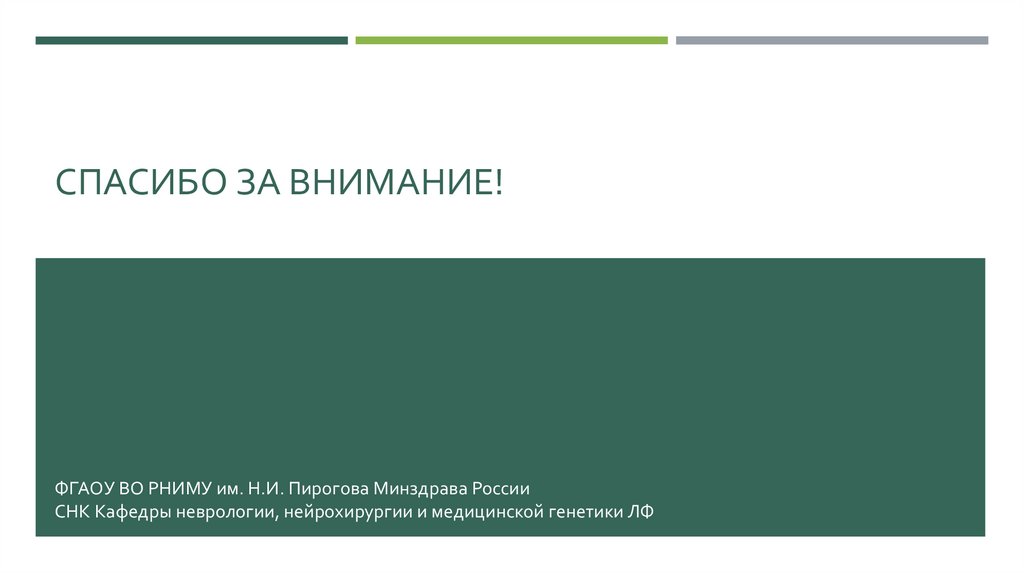 СПАСИБО ЗА ВНИМАНИЕ!ФГАОУ ВО РНИМУ им. Н.И. Пирогова Минздрава России