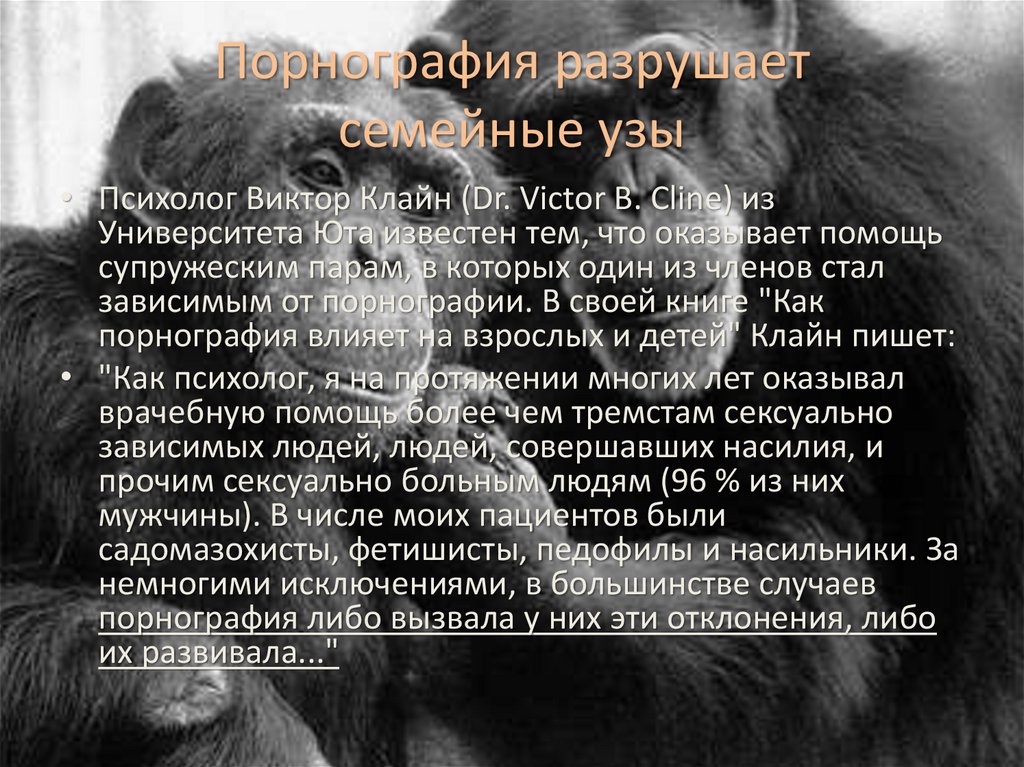 порнография влияет на взрослых и детей" Клайн пишет: