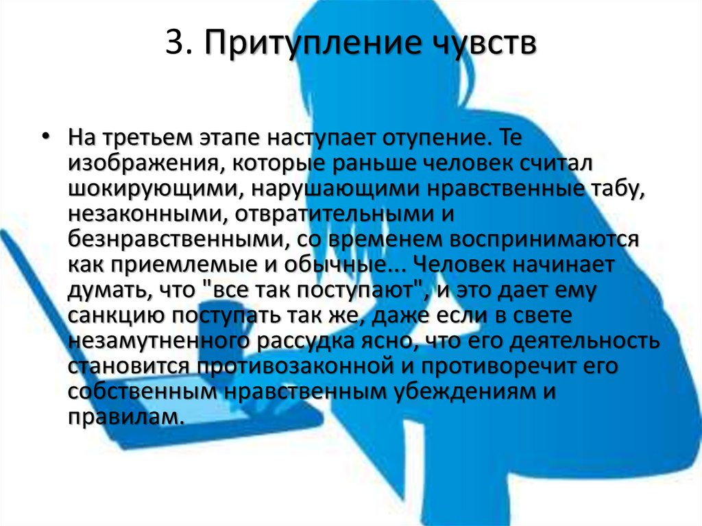3. Притупление чувств• На третьем этапе наступает отупение. Те