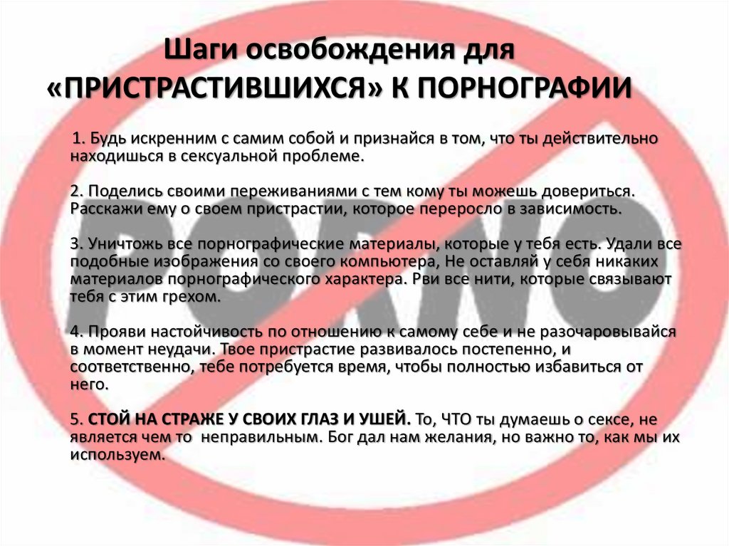 Шаги освобождения для«ПРИСТРАСТИВШИХСЯ» К ПОРНОГРАФИИ