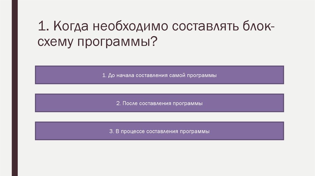 1. Когда необходимо составлять блоксхему программы?1. До начала составления самой программы