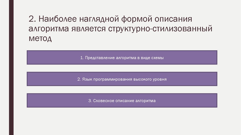 2. Наиболее наглядной формой описанияалгоритма является структурно-стилизованный