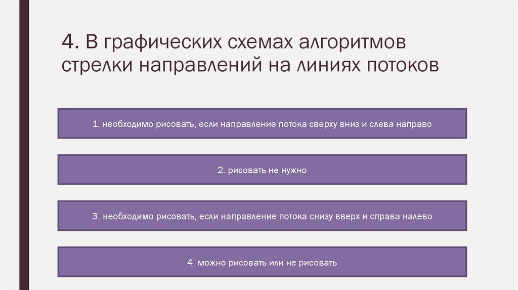 4. В графических схемах алгоритмовстрелки направлений на линиях потоков