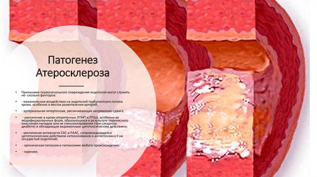 - артериальная гипертензия, увеличивающая напряжение сдвига;