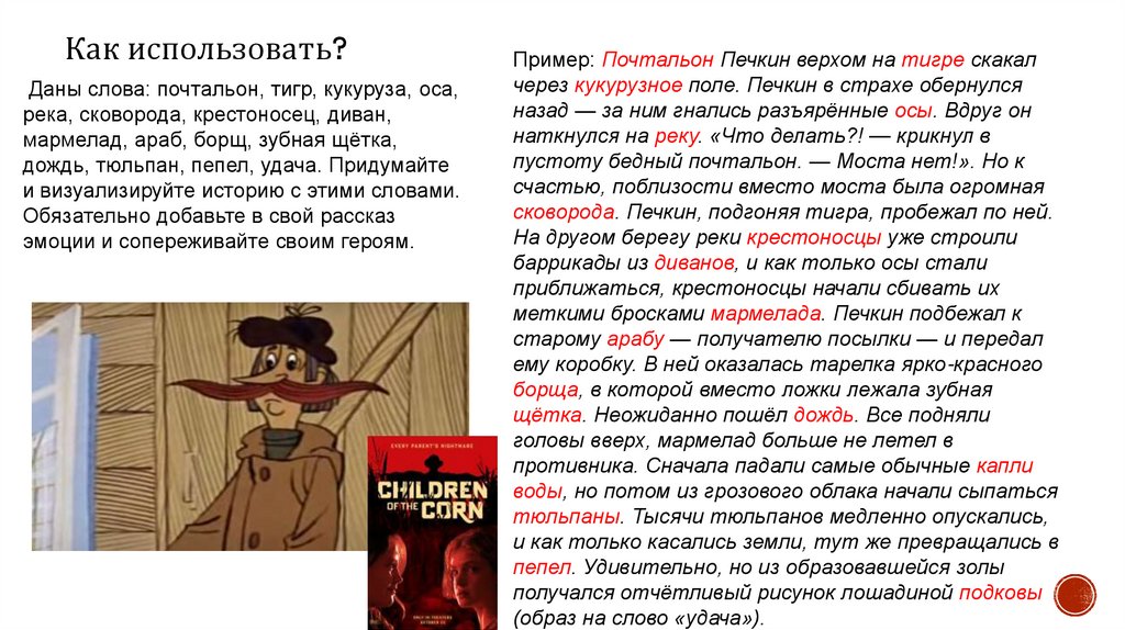 Как использовать?Даны слова: почтальон, тигр, кукуруза, оса,
