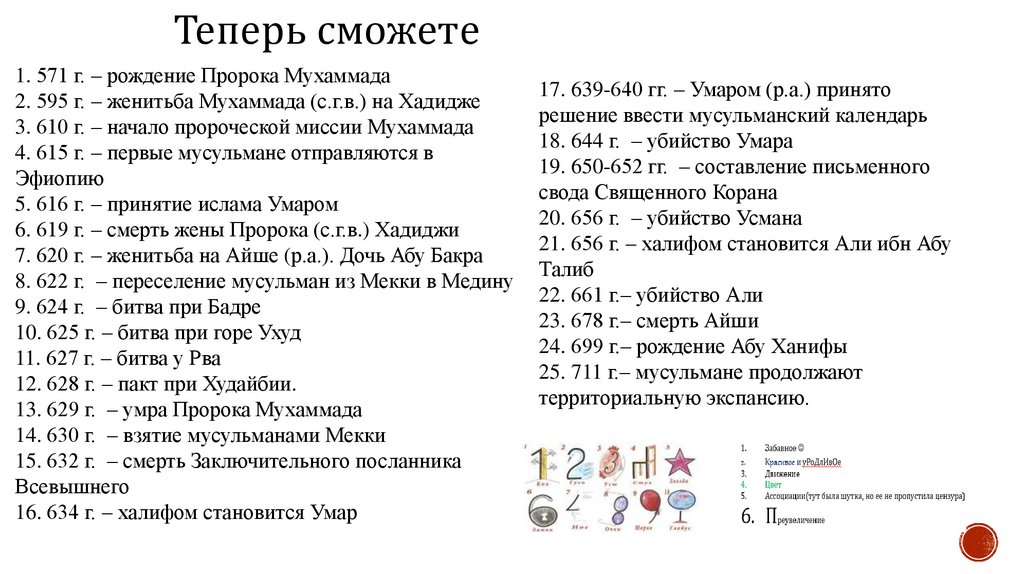 Теперь сможете1. 571 г. – рождение Пророка Мухаммада