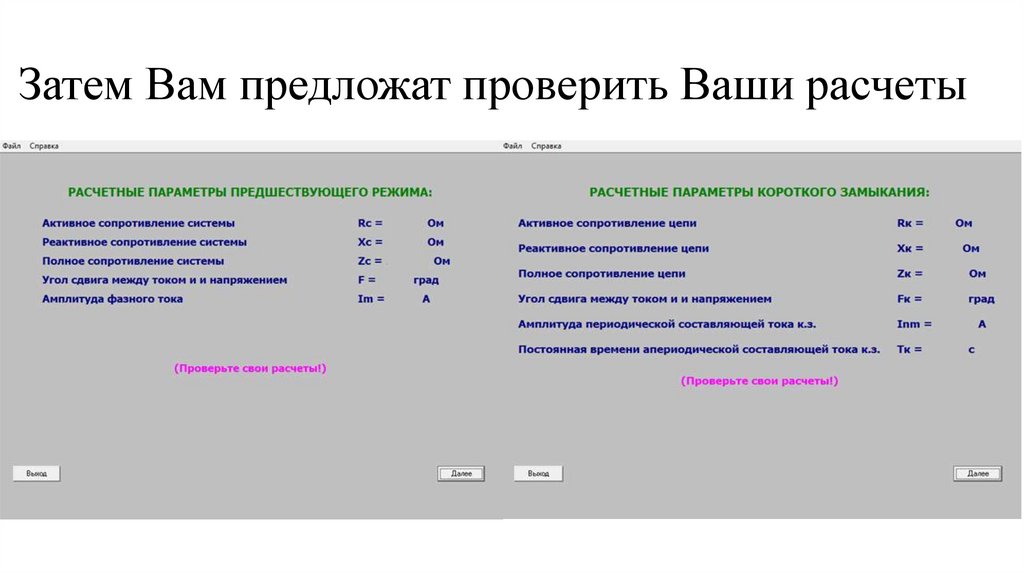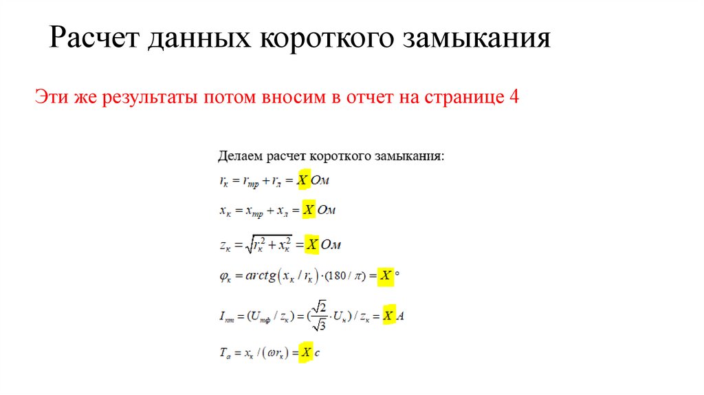 Расчет данных короткого замыканияЭти же результаты потом вносим в отчет на странице 4