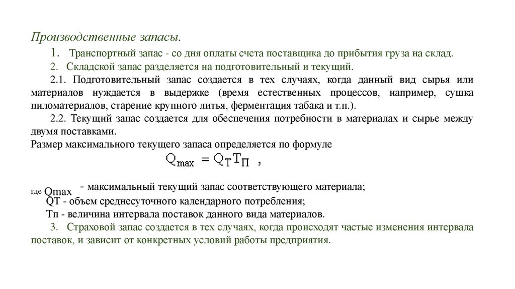 2.2. Текущий запас создается для обеспечения потребности в материалах и сырье между