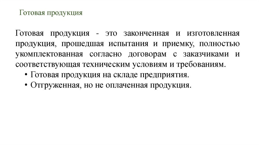 Готовая продукцияГотовая продукция - это законченная и изготовленная
