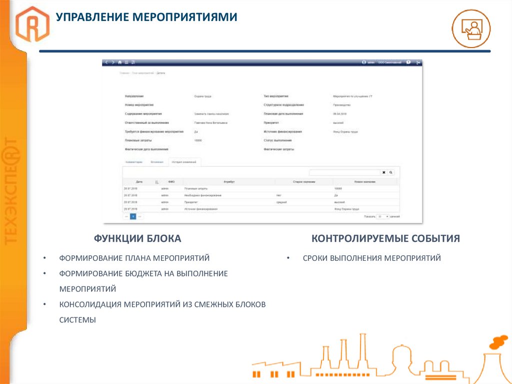 УПРАВЛЕНИЕ МЕРОПРИЯТИЯМИФУНКЦИИ БЛОКА