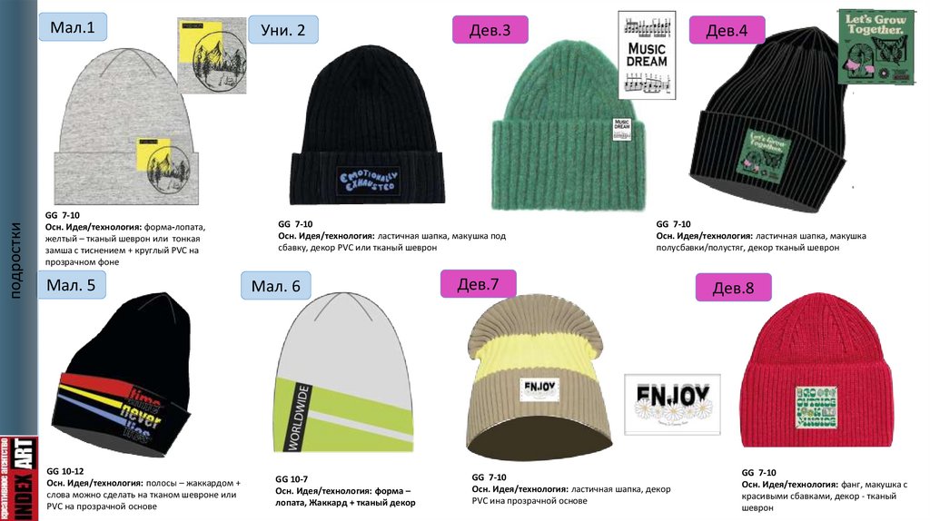 Осн. Идея/технология: ластичная шапка, декор