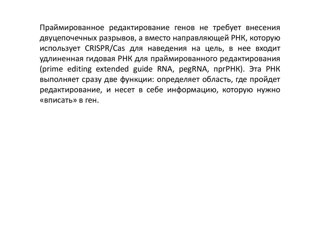Праймированное редактирование генов не требует внесениядвуцепочечных разрывов, а вместо направляющей РНК, которую