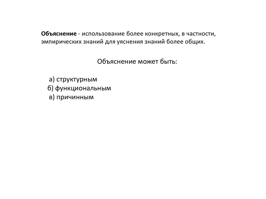 Объяснение - использование более конкретных, в частности,эмпирических знаний для уяснения знаний более общих.