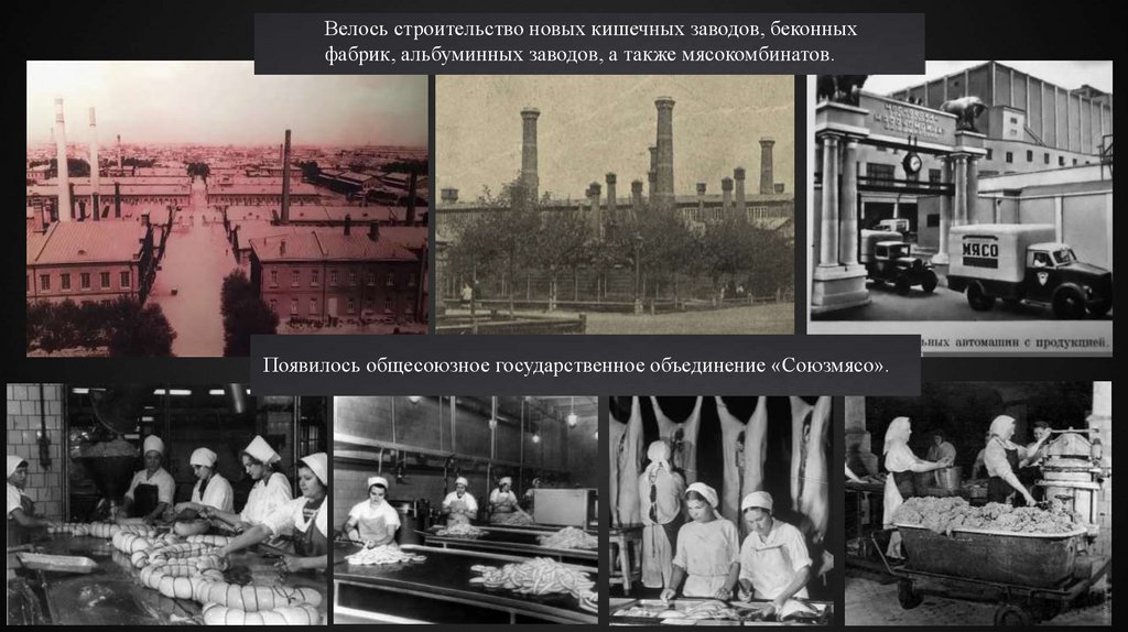 Велось строительство новых кишечных заводов, беконныхфабрик, альбуминных заводов, а также мясокомбинатов.