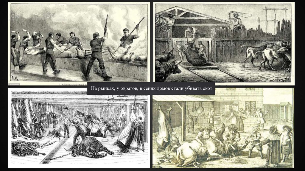 На рынках, у оврагов, в сенях домов стали убивать скот5.
