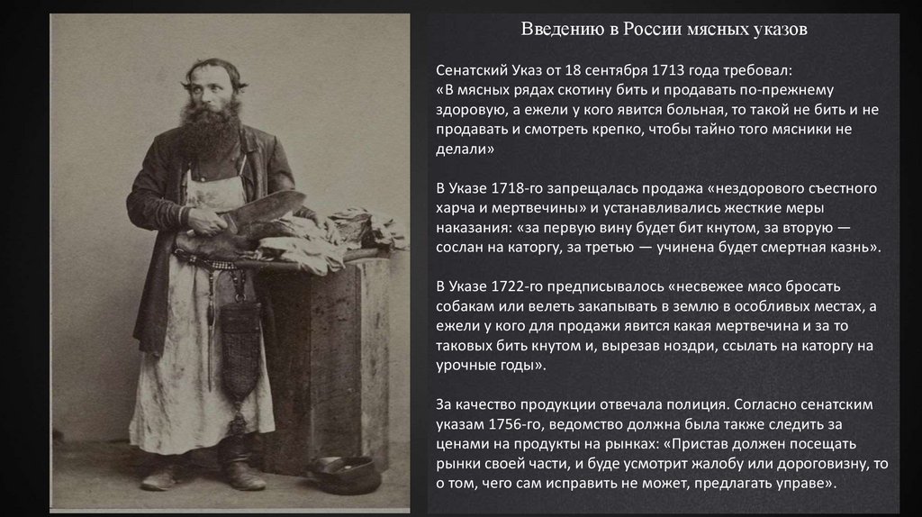 Введению в России мясных указовСенатский Указ от 18 сентября 1713 года требовал: