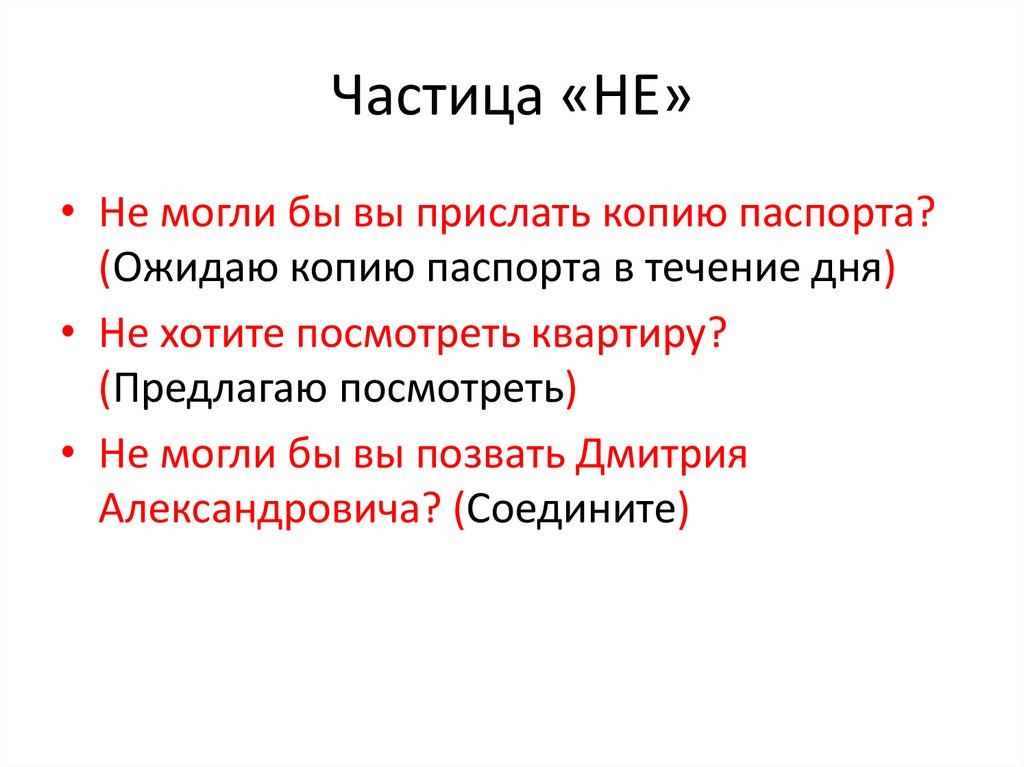 Частица «НЕ»• Не могли бы вы прислать копию паспорта?