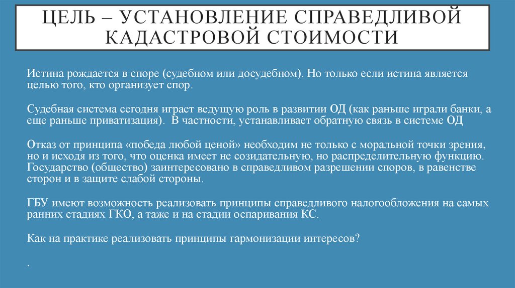 ЦЕЛЬ – УСТАНОВЛЕНИЕ СПРАВЕДЛИВОЙКАДАСТРОВОЙ СТОИМОСТИ
